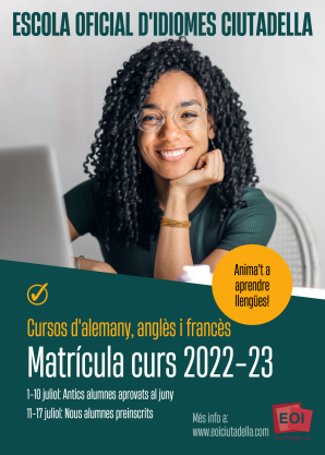 - Del 18 al 22 de juliol: sol·licitants no preinscrits (segons plaçes disponibles- Matrícula presencial)