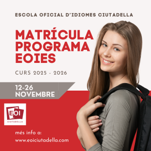 - Si et presenteu per la modalitat EOIES i, posteriorment, voleu obtenir plaça com a alumne oficial de l’EOI de Ciutadella per al curs acadèmic 2026/27, haureu de realitzar la preinscripció en els terminis i condicions que explicarem a la nostra pàgina web.