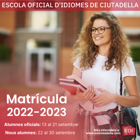 - Anglès (Online): del 14 setembre, a les 8:00h al 16 setembre, a les 22:00h (“Últimes vacants”) i del 28 setembre, a les 8:00h al 30 setembre, a les 22:00h
