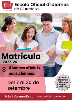 TERMINI DE MATRICULACIÓ: Del 7 al 30 de setembre
