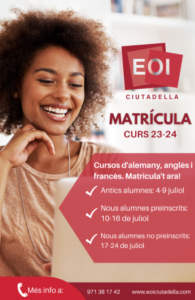 4 maig, 2023 NÚMERO 8 DE LA REVISTA GUAITA! Estem encantats de compartir amb vosaltres el vuité número de la revista de l’EOI de Ciutadella. AQUÍ podreu veure la revista Guaita! de 2023. Esperem que us agradi tant com a nosaltres. Moltes gràcies a tots, alumnat i personal de l’escola, per les vostres col·laboracions! Comptem amb voltros per a la pròxima edició […]
